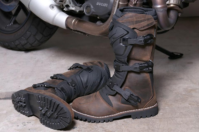 The role of adventure riding boots starts where the road ends. These shoes come with purpose-built soles to ensure that you are firmly planted on tricky terrains like, gravel, rocky surfaces or loose earth. The thick leather construction of these riding boots also makes sure that your feet are shielded from impact of stones and flying debris on the trail.
